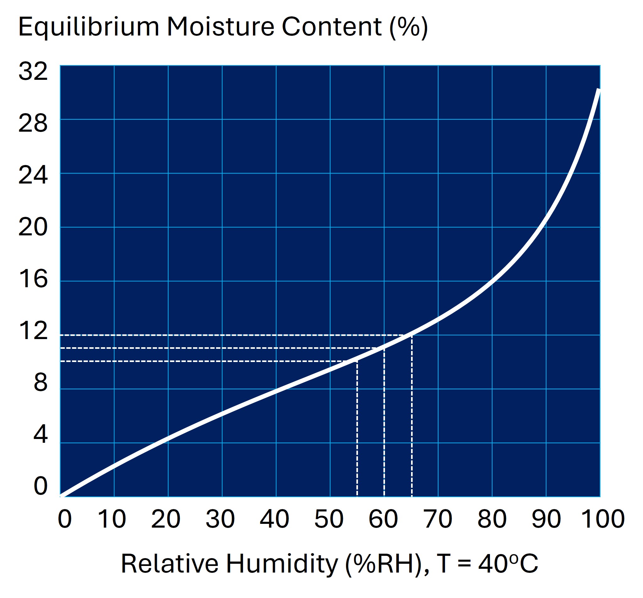 แผนภูมิที่ 1 แสดงความสัมพันธ์ระหว่างความชื้นสัมพัทธ์ในอากาศกับปริมาณความชื้นสมดุลของเนื้อไม้​