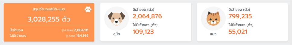 ฐานข้อมูลสรุปจำนวนสุนัขและแมวที่มีเจ้าของและไม่มีเจ้าของ​